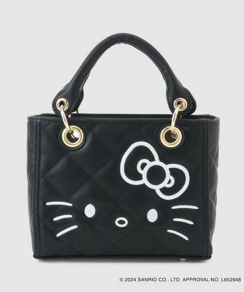 シックなブラックとフェミニンなパールピンクベースでキルティングを施したミニバックです。ハンドバックにもショルダーバックにも使える2WAYになっています。HELLO KITTYの顔を前面に刺繍しています。
