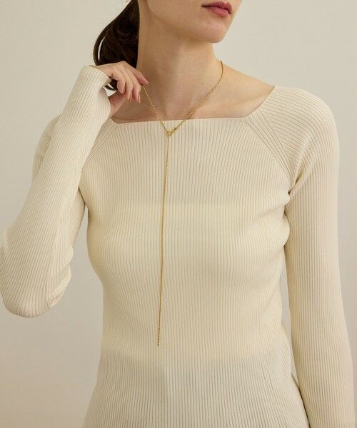 ラリエットタイプのネックレスなのでY字で首元をすっきりと見せてくれます。