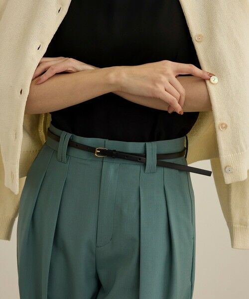 コバはエッジの効いた切り目ですっきりとしたモードな仕上がりに。細幅ですが、しっかりとハリのある素材で、スタイリングを引き締めてくれます。
