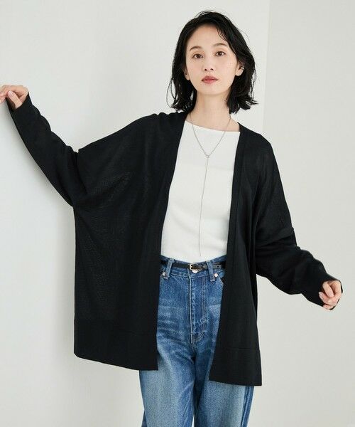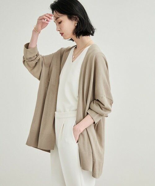 幅広のワイドシルエットでひらひらと揺れる優雅な分量感と、シンプルに留めのないすっきりと着流しのできるフロントディテールがポイントです。ヒップラインを隠してくれる丈感で、シンプルなリブノースリーブなどにさっと羽織るだけでスタイリングが決まります。