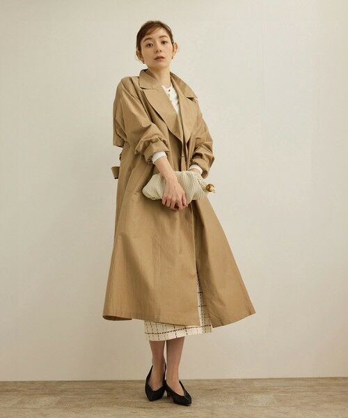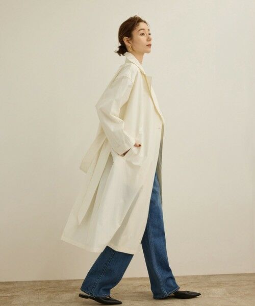 ゆったいとしたフォルムと共地のベルトがアクセントのスプリングコート。敢えて裏地を付けず、軽く仕上げました。共地のベルトを締めてエレガンスなスタイルや、釦をあけて軽やかなスタイルも演出します。