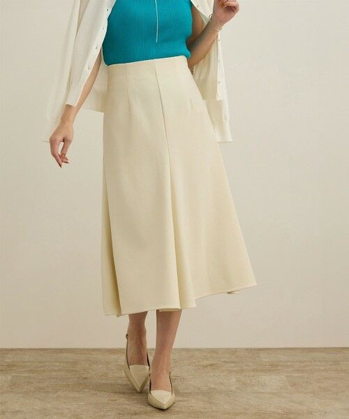 中心とサイドをハギ合わせにすることで横には広がらず、裾にひだのようなボリュームと落ち感を加えた贅沢なフレアースカートです。