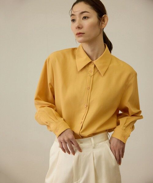 お尻が隠れるくらいの着丈感と袖のタック分量と後ろにつけたゆとり感に拘り、肌離れするオーバー気味のサイズ感で、サイドシルエットが印象的です。