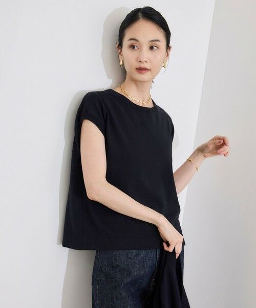 色々なシーンで活躍する、ワンランク上の大人ベーシックプルオーバー。シンプルなTシャツのように着られ、肩先まで掛かったフレンチスリーブは、さりげなく二の腕をカバーしてくれます。 見頃に施したアナグラム刺繍がアクセントになっています。
