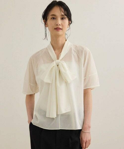 【洗える】シアートリコットボウタイブラウス