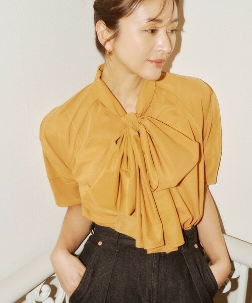 ボリュームのあるボウタイが華やかなブラウス。