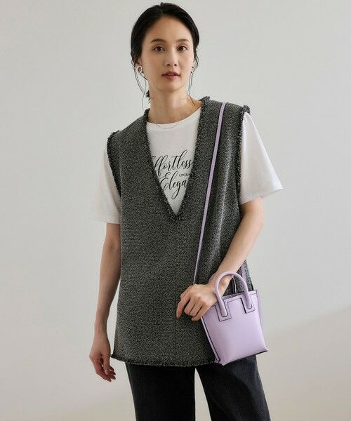 深いシャープなV開きのオーバージレです。Tシャツやシアートップス、リネンライクワンピースともレイヤードできるオーバーサイズになっています。襟ぐりと裾をフリンジ仕様にアクセントにしています。