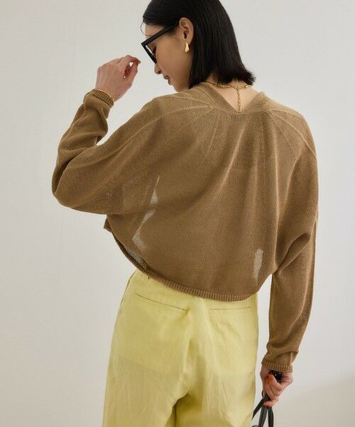 ワンピースやノースリーブの上にさらっと羽織って、スタイリングのアクセントや冷房対策にもなるボレロ丈のカーディガン。ホールガーメントなので柔らかく体になじみます。とても軽く持ち運びにも便利。