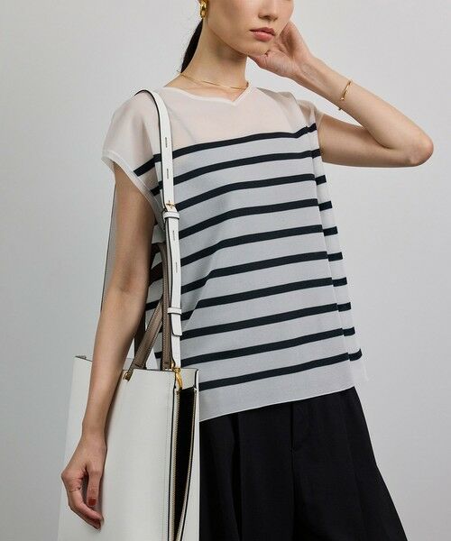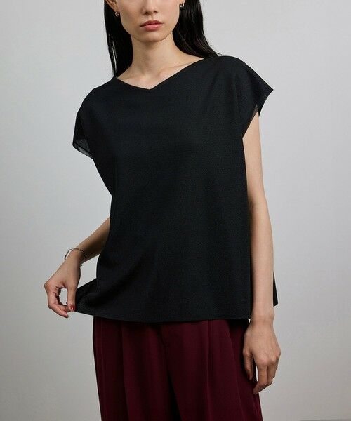 軽やかでさらりとした着心地が魅力のポリエステル素材。繊細なシアー感とシャイニーな糸使いが、上品で涼しげな印象を演出します。