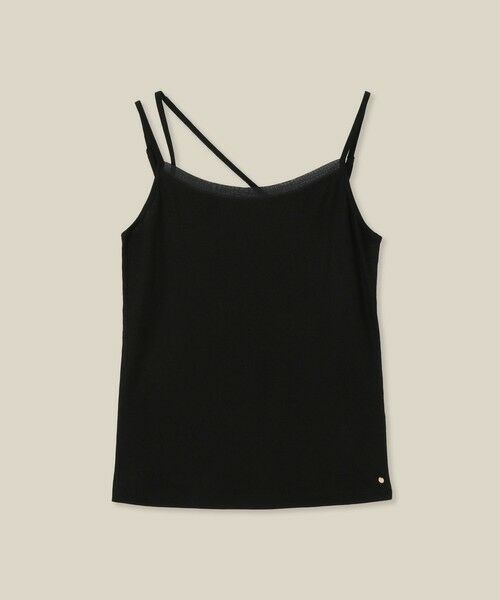 素材コンビがアクセントになっており、インナーアイテムとして程よいフィット感があります。デザイン肩ヒモが1本斜めに前後2WAYで入る仕様になっています。