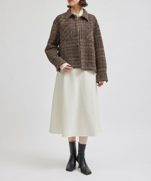 オンオフで活躍する同素材のトップス(品番:GGM34220)と合わせてワンピース風に着こなすセットアップstyleがオススメ。単品使いでも、シンプルなデザインのフレアスカートなのでどんなトップスにも合わせやすいのが◎。コンパクトなトップスと合わせると、スタイルアップして見えるかも。