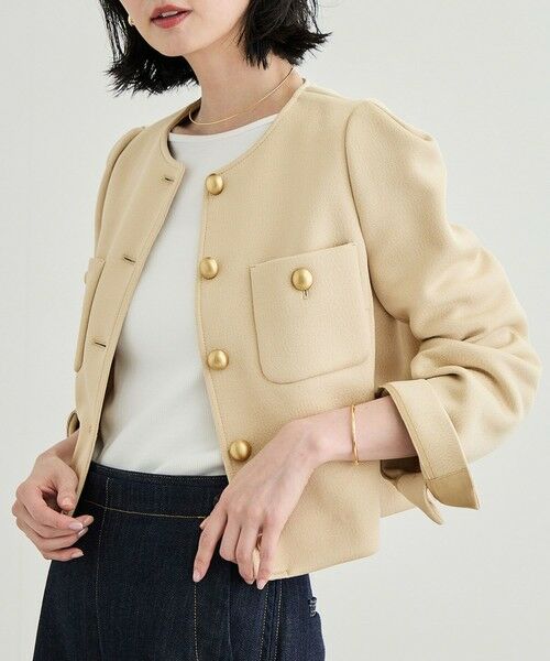 ダンボールジャージならではのリラックスした着心地が魅力のクルーネックショート丈ジャケットです。金ボタンがトレンド感を演出します。ボクシーなシルエットで、着丈は短めのミドルヒップ丈です。裏地がなく軽い仕立てで、カーディガン感覚で羽織っていただけるジャージジャケットです。