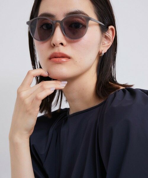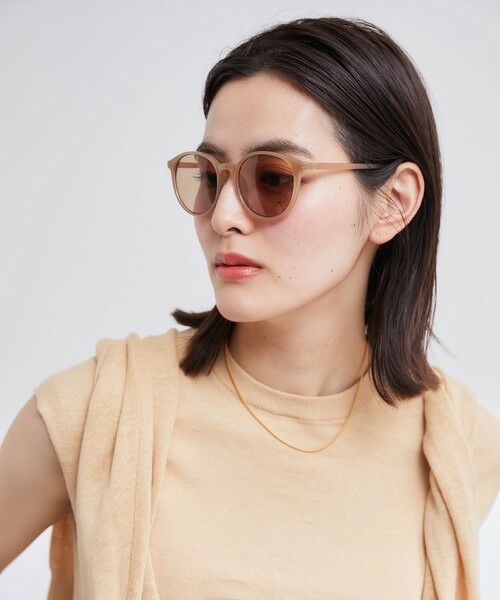 ニュアンスのあるやさしいカラーとボスリントンフレームが女性らしい雰囲気のUVカットサングラスです。テンプルとマッチングさせたレンズカラーでノーブルな印象に。