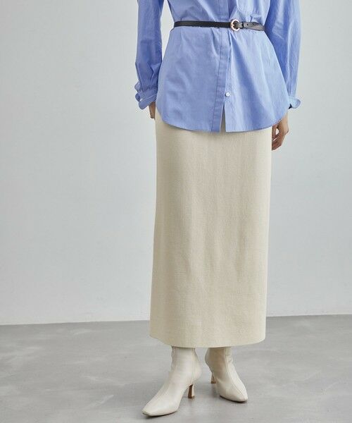 シンプルなIラインスカートなので、オンオフ問わず着回しの効くアイテムです。ざっくりとしたニットや、ロングシャツ等ど合わせて足元はショートブーツがオススメです。