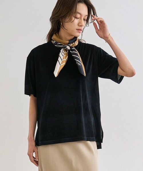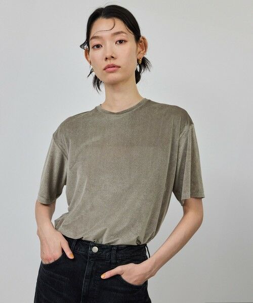 1枚で秋を先取りできる着映えが叶う大人のベロアTシャツ。ぴったりしすぎない絶妙なサイズ感で、1枚でサマになる半袖トップスです。シンプルだからこそカジュアルになりすぎず、デコルテライン首回りを綺麗に・美しく引き立たせる襟の開きにもこだわりました。着るだけで季節を先取れるアイテムです。
