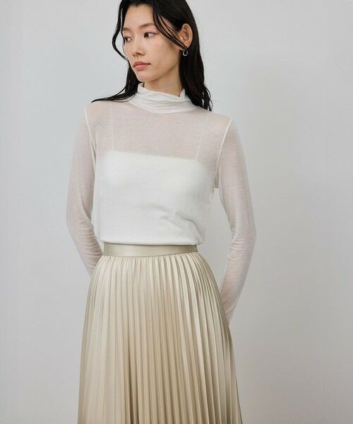 繊細な透け感としなやかな肌触りが魅力のシアータートルカットソーです。ネックは程よい高さで、首元に沿うように優しくフィットします。軽やかな着心地ながら、きちんと感もあり絶妙なバランスです。シンプルながらも素材の良さが際立つ、大人のための1着です。秋冬のスタイリングに上質なニュアンスを添えてくれます。