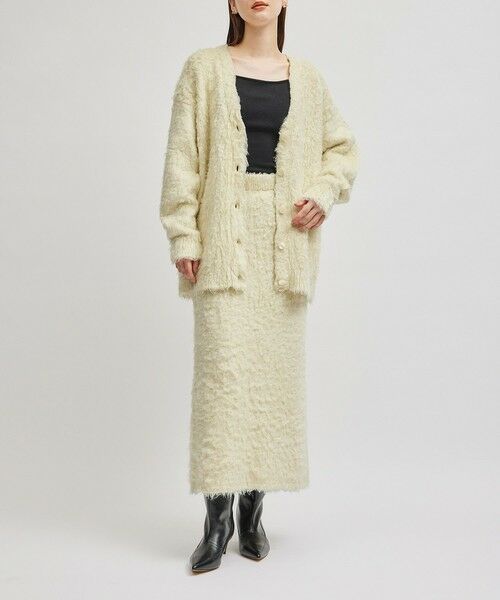 毛足の長い素材でもすっきり見えるペンシルスカート。長めのバックスリットで動きやすく、ちらっと見える素肌に女性らしさを感じます。ウエストはゴム仕様なのでリラックスした着心地です。