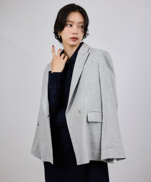セミダブル仕立てのボクシーなシルエットのジャケットです。あえてディテールをそぎ落とし、クリーンな印象に仕上げています。素材の風合いを生かしたつくりで、ジャケットでありながら柔らかい雰囲気で着用いただけます。