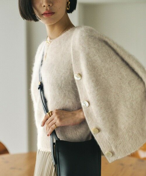 厳選した原毛を使用し、なめらかに紡績しています。さらに風合いを高めるためにカシミヤをブレンドした贅沢な素材に、ふんわりとしたファー加工を施しました。上質な毛並みならではのやわらかなタッチと、ふっくらとした毛吹きが魅力です。