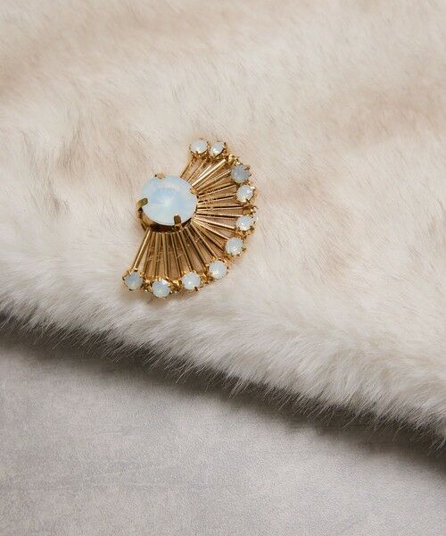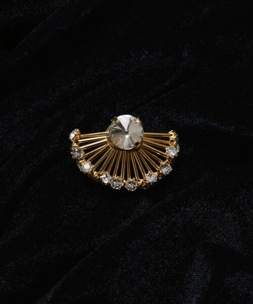 花びらのようなビジューとビーズが煌めく、上品なブローチ。幾何学的にも見えるモダンなフォルムで、ニットやブラウスのボタン部分に重ね付けできるよう、小ぶりな大きさに仕上げています。