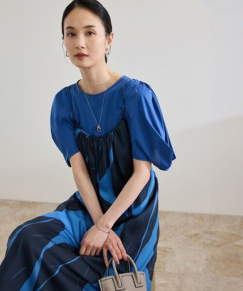 レイヤードが楽しめるプリントキャミワンピース。素材で柔らかく、軽やかに着用できます。後ろのひもで肩紐の調整可能。