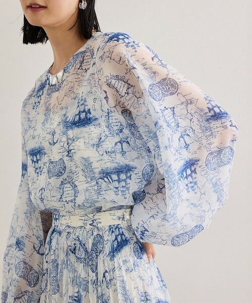 程良い張り感のスパンオーガンジーにトワルドジュイのプリントを施したものと、サテンにプリントを施したもので、透け感を楽しめます。