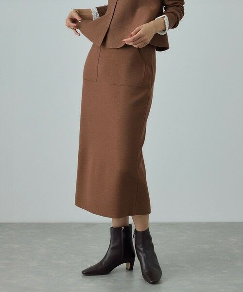 ウール混ニットポケット付きタイトスカート/イージーケア・セットアップ対応