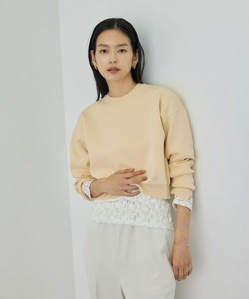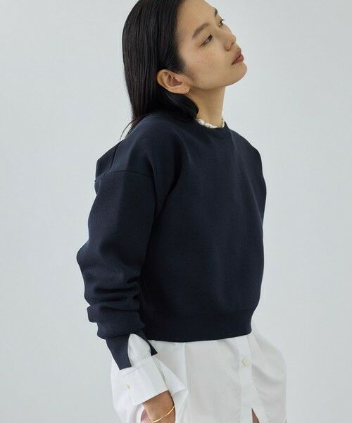 身幅と袖にほどよいゆとりを持たせてリラックス感を選出しながらも、着丈をコンパクトにすることで、スカートにもパンツにも合うデザインに仕上げました。左裾にあるロゴ刺繍もポイント。シンプルなシルエットの中に、大人のこなれ感と上品さを感じさせます。