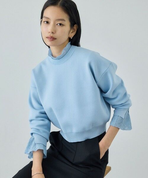 ストレートシルエットのスカートやパンツともにバランスよく合わせられるサイズに仕上げています。袖口のスリットから、カットソー・シャツやレースなどを出してレイヤードスタイルを取り入れると、スタイリングが新鮮になり飽きずに長くご愛用いただけます。