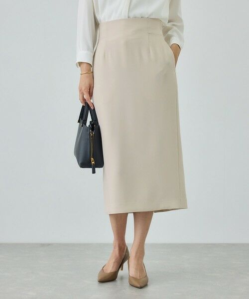 後ろにさりげなくゴムが入ったタイトスカート。ヒップラインが目立たないようにややゆとりのあるシルエットで、ストレスなく着用可能です。ラインがシャープにみえる美しいシルエットもポイント。セレモニー、マザーニーズ、お仕事・通勤にも着用できる汎用性の高いアイテムです。同素材でジャケット、テーパードパンツ、ワイドパンツ、タイトスカート、ブラウスの展開があり、ご使用シーンに合わせてスタイリングが可能です。