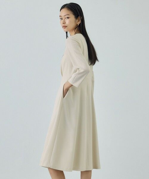 ウエスト・腰回りがすっきり見え、裾にかけて緩やかに広がるワンピース。ウエストの設定をやや高めにすることで、スタイルよく着用でき、セレモニー、マザーニーズ、お仕事・通勤としても着用できる汎用性の高いアイテムです。