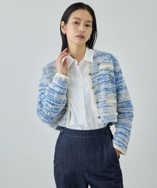 ツイードニットショート丈カーディガン/イージーケア