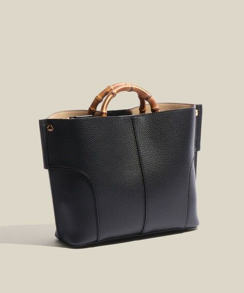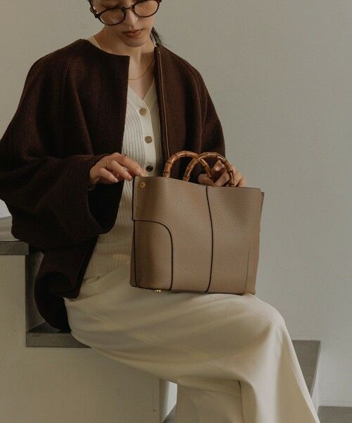 コンパクトに必要なものを持ちたい方へ。バンブーハンドルが抜け感をプラスし、きれい目な通勤シーンに限らず休日にも幅広く合わせられます。ハーフマットなシュリンク調のしなやかな表面感が、きちんと服もカジュアル服もほどよく調和できるようデザインです。内勤の方やオフィスカジュアルOKの方はお仕事バッグとしてもマッチする上品なデザイン。取り外し可能なストラップ付なので、ショルダーバッグとしても使用可能。サブバッグと合わせてバッグ2個持ちもおすすめです。
