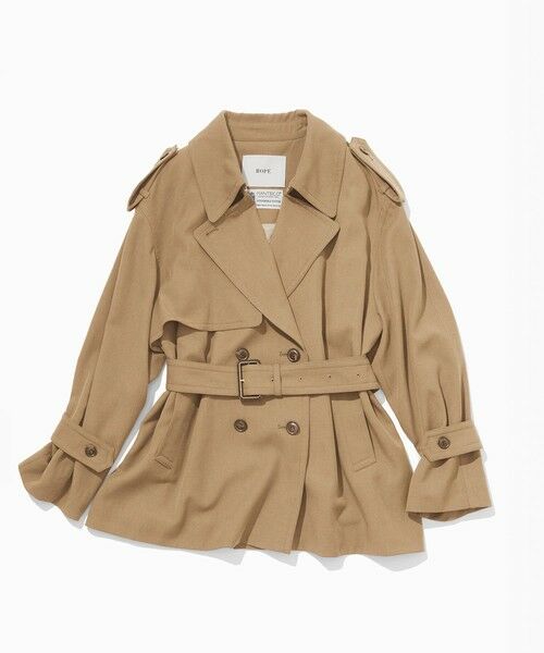 大きめなアンブレラヨークやガンパッチが特徴で、肩のエポーレットもトラディッショナルな雰囲気です。ウエストベルトを前で結んだり後ろに逃がしてニュアンスを楽しむことができます。トラディッショナルな雰囲気ながら、素材の柔らかさが程よい抜け感を出し、今っぽいスタイリングを可能にしてくれます。