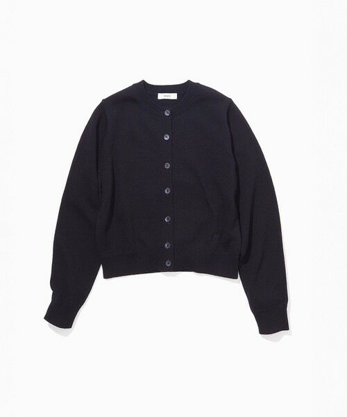 カーディガンの左裾にはアナグラム刺繍を入れ、さりげないポイントで高級感をプラス。