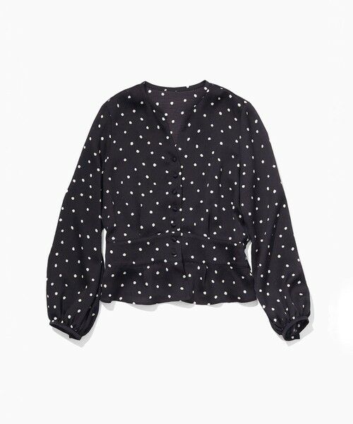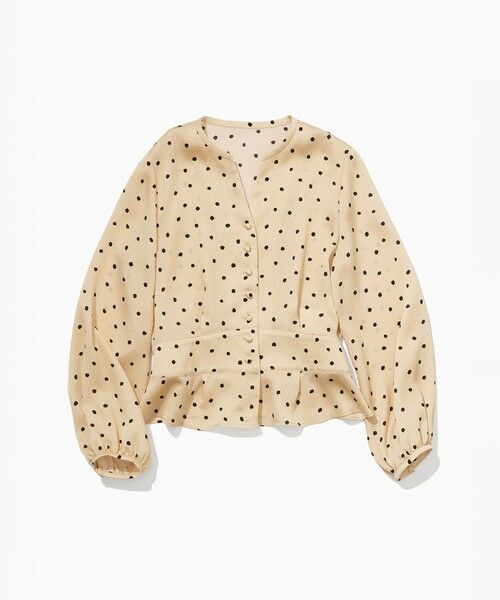 後ろウエストにシャーリングを施し、程よくメリハリのあるタックペプラムシルエットがフェミニンなブラウスです。表面感のある素材にドットプリントを施し、クラシカルな印象に仕上げています。
