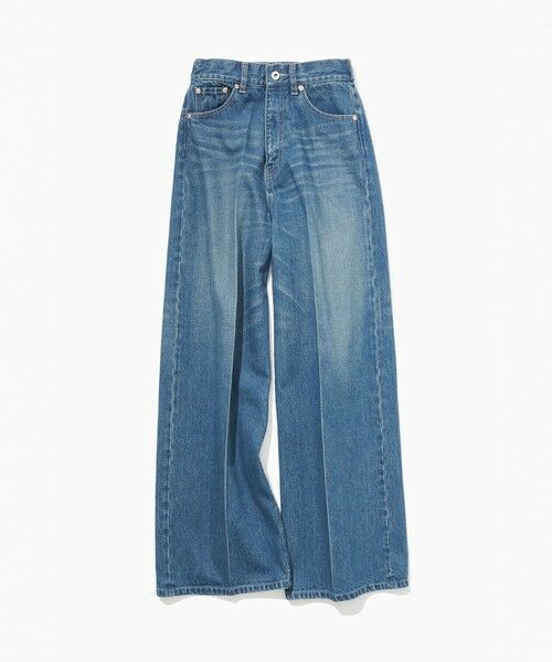 センタープレスで、ウエストゴムによりイージーに着用できるワイドパンツ。イージーながら腰回りはすっきりとしたサイズ感で、デニムながらスタイルよく見えるよう設計しています。同素材のジャケットも展開。