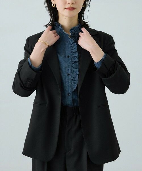 シングルボタンの総裏仕立てテーラードジャケット。程よくゆったりとしたシルエットで、インナーの着用もしやすく、袖は織り上げやすい仕様になっています。素材の風合いを生かした作りで、ジャケットながら柔らかい印象で着用できます。