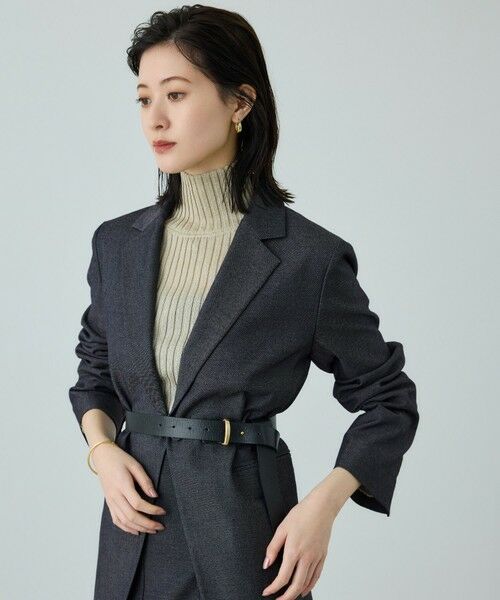 デニムライクに表現された素材。トリアセテート混なので程よい落ち感とツヤ感があり、高級感のある素材感です。しわになりにくく、ややストレッチが入っているため着用しやすい素材です。