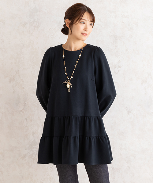 毛玉になりにくいのが特徴のあったか素材を使用したティアードカットソー。