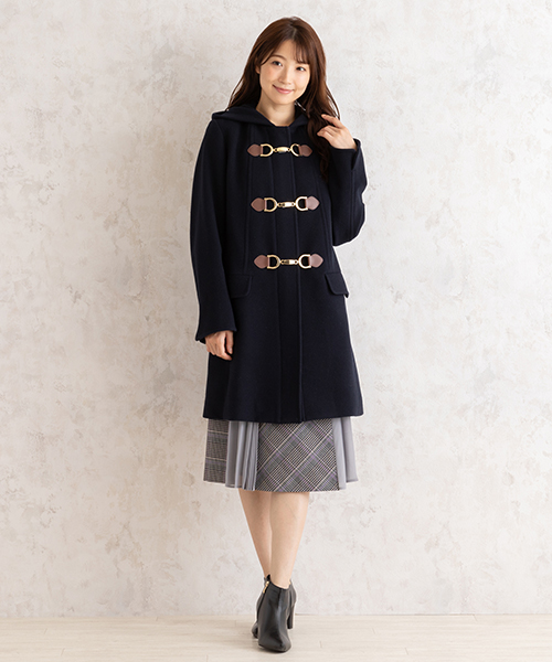 ラムウールのメルトン素材を使用したビットが可愛いアクセントになったダッフルコート。