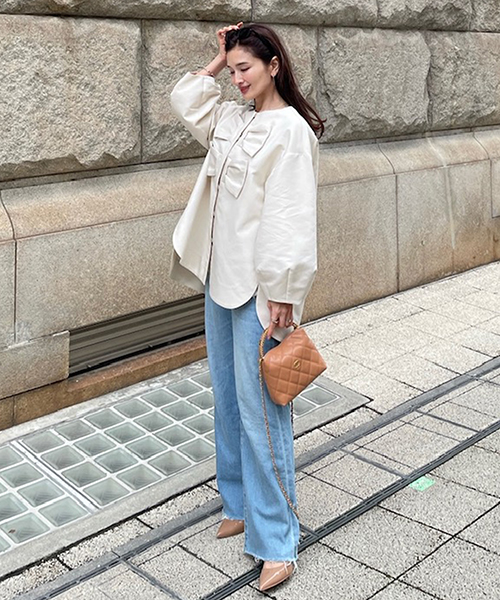 スタンダードなアイテムに女性らしい柔らかさを加え、モードに仕上げたオーディアミューズ。