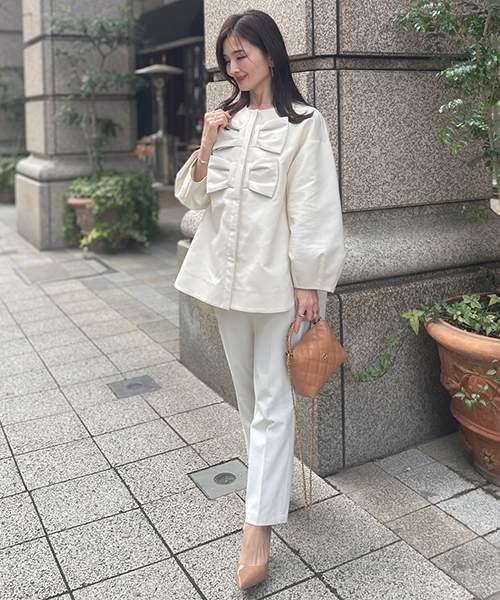 コンサバティブになりすぎず、構築的なシルエットと手の込んだディティールで織りなすクチュール感のあるアイテム。