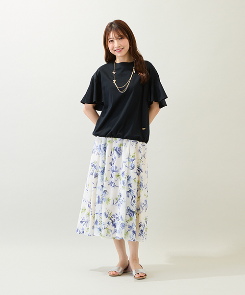 ボリュームのあるフレアスリーブとゴム入りのバルーンヘムがフェミニンなカットソー。