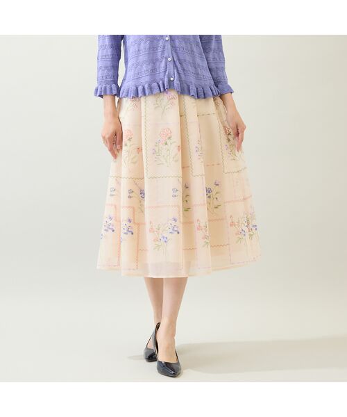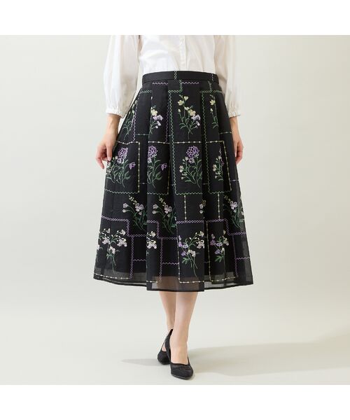 コーディネートが華やぐオリジナル刺繍のフレアスカート。