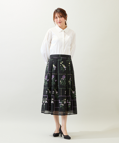 コーディネートが華やぐオリジナル刺繍のフレアスカート。