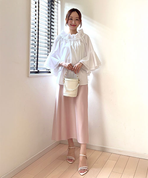 スタンダードなアイテムに女性らしい柔らかさを加え、モードに仕上げたオーディアミューズ。
