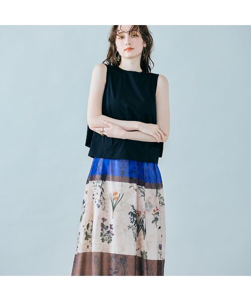 ・大胆なカラー配色とボタニカルモチーフが可愛いだけでは終わらない華感満点なスカート。