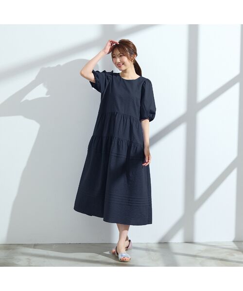 シンプルながら可愛い印象に仕上げた、暑い夏でも快適に着られるワンピース。