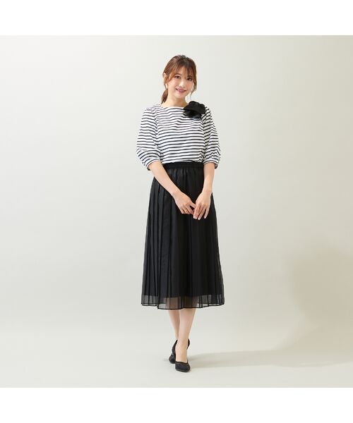 ハリ感と透け感のある素材を使用したすっきりとシャープな印象のプリーツスカート。